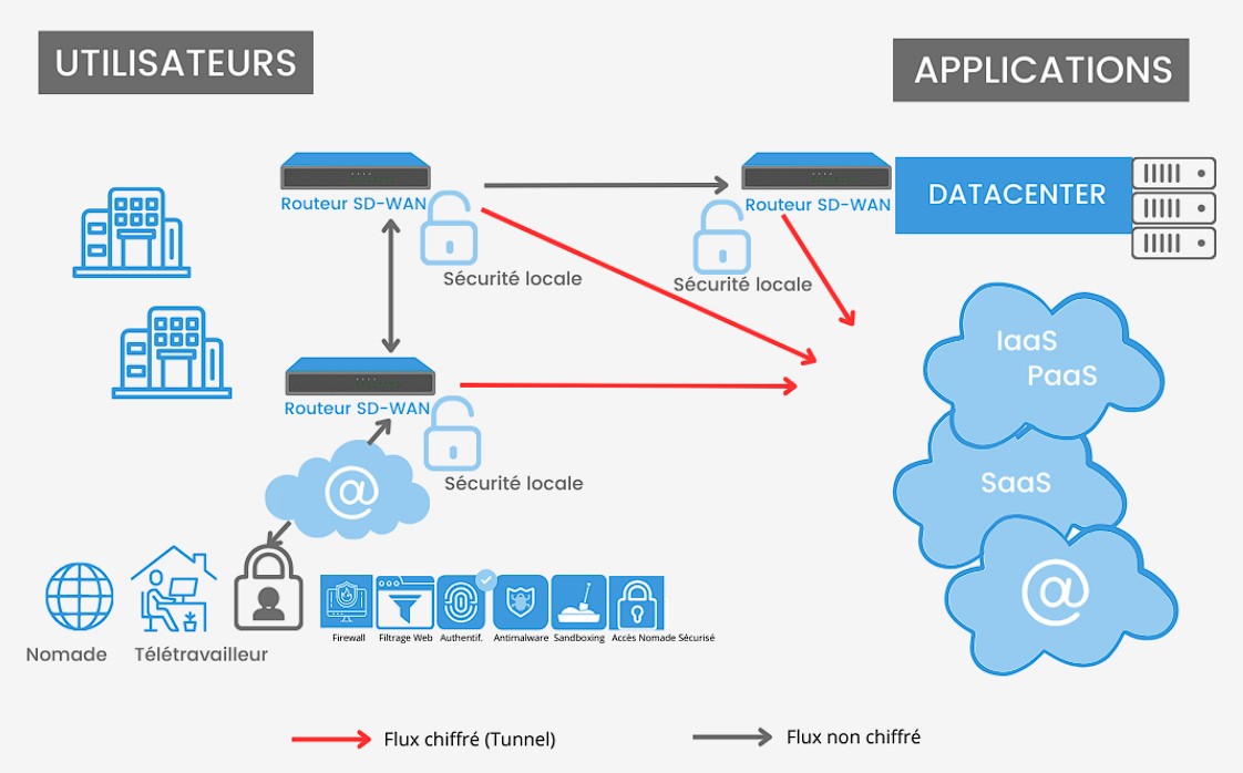 De surcroît, afin d’établir des liaisons les plus performantes possibles, une infrastructure SD-WAN est capable de gérer :